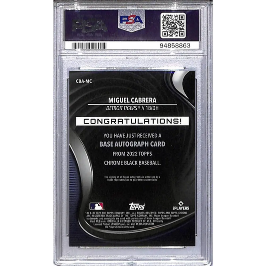 2022 Topps Chrome Black Gold #CBA-MC Miguel Cabrera PSA 10 GEM MINT Auto 34/50 Detroit Tigers