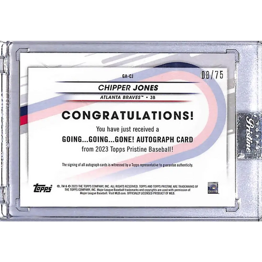2023 Topps Pristine Going, Going, Gone!!! #GA-CJ Chipper Jones NM-MT Auto 8/75 Atlanta Braves