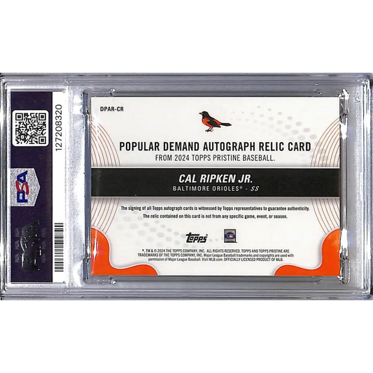 2024 Topps Pristine Popular Demand Pink #DPAR-CR Cal Ripken Jr. PSA 8 NM-MT MEM Auto 12/15 Baltimore Orioles