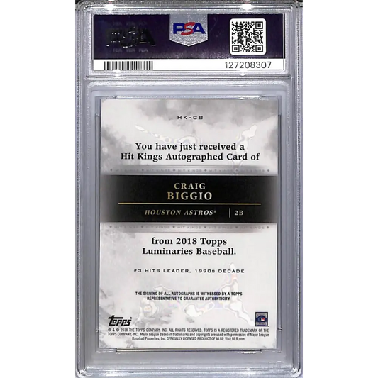 2018 Topps Luminaries Hit Kings #HK-CB Craig Biggio PSA 10 GEM MINT Auto 8/15 Houston Astros