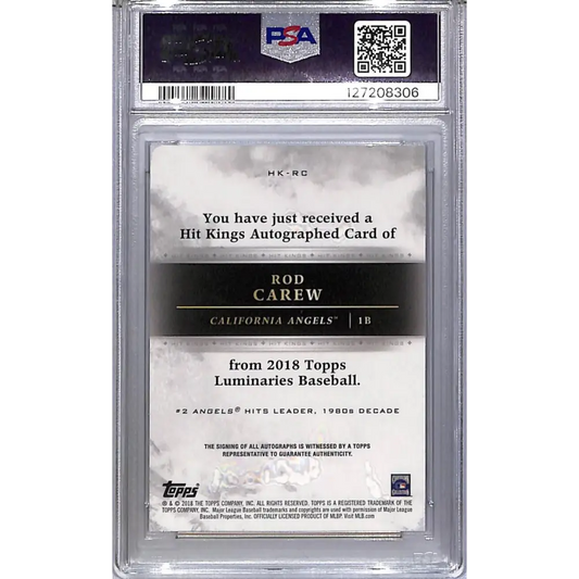 2018 Topps Luminaries Hit Kings #HK-RC Rod Carew PSA 10 GEM MINT Auto 5/15 California Angels