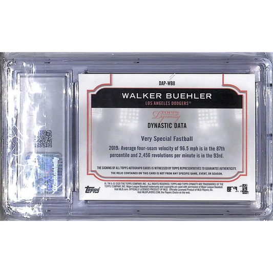 2020 Topps Dynasty #DAP-WB8 Walker Buehler CGC 10 Gem Mint MEM Auto 10/10 Los Angeles Dodgers