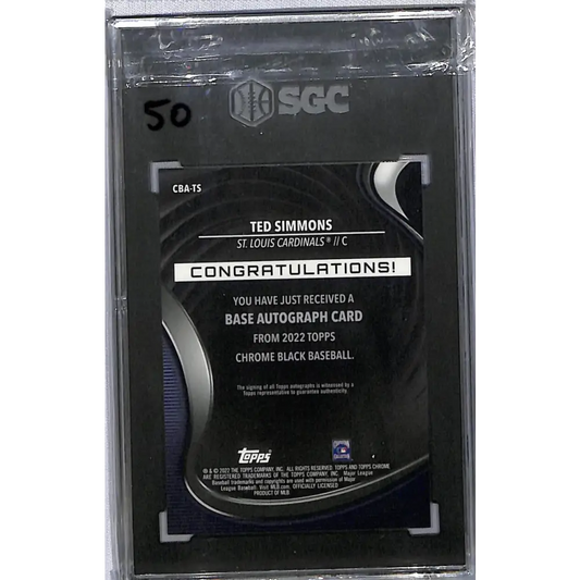 2022 Topps Chrome Black #CBA-TS Ted Simmons SGC 10 Gem Auto 24/150 St. Louis Cardinals