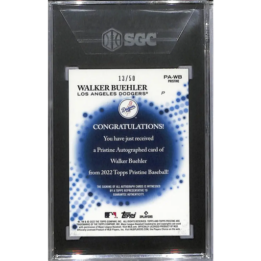 2022 Topps Pristine Pristine Gold #PA-WB Walker Buehler SGC 10 Gem Auto 13/50 Los Angeles Dodgers