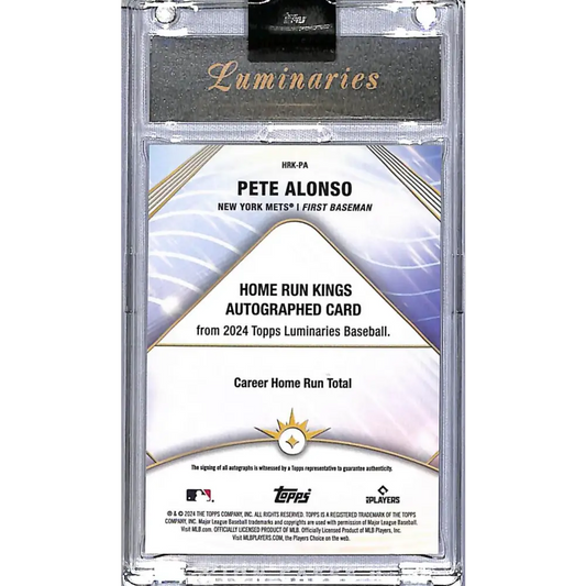 2024 Topps Luminaries Home Run Kings #HRK-PA Pete Alonso NM-MT Auto 1/1 New York Mets